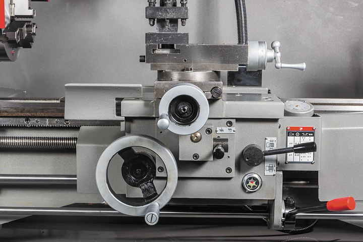 GHB-1340A DRO выполнен по двухвинтовой схеме. Для нарезания резьбы используется ходовой винт, для автоматического точения - ходовой вал. На станке возможна регулировка зазоров направляющих при помощи клиновых планок, конструкция задней бабки позволяет обтачивать конические заготовки. Для облегчения механического переключения режимов на GHB-1340A DRO применяется толчковый (импульсный) режим пуска двигателя.