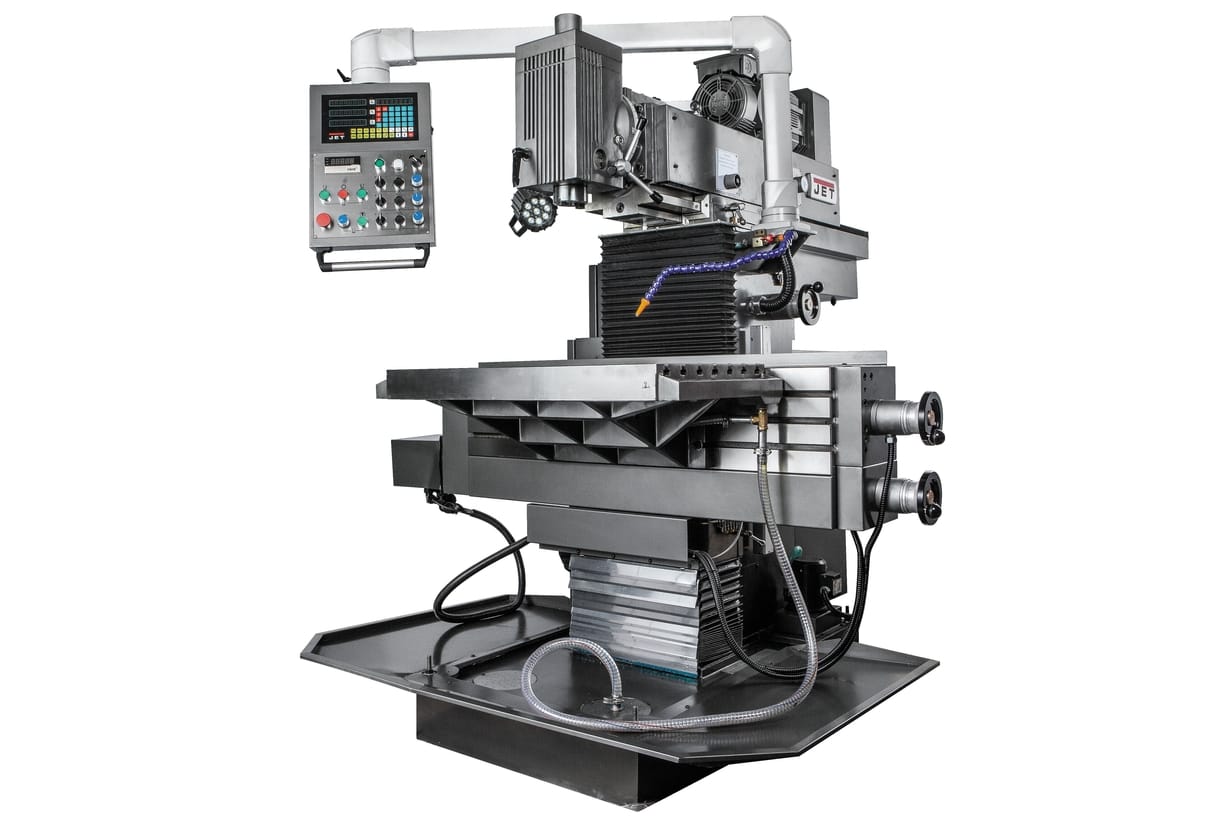 Особенности:Широкоуниверсальный фрезерный станок JET JUTM-1834 Servo DRO – мощный и производительный станок в линейке оборудования компании. Он удовлетворит требованиям самого взыскательного заказчика и рассчитан на тяжелые условия эксплуатации и длительные нагрузки. Станок предназначен для всевозможных видов фрезерной обработки, сверления, растачивания и прочих операций в любом координатном направлении и может достигнуть высокой точности. Имеет горизонтальный и вертикальный рабочие столы, что существенно расширяет круг задач и операций при производстве оснастки, инструментов, приспособлений, пресс-форм и других деталей сложных форм, мелкими сериями на механообрабатывающих, инструментальных и ремонтно-механических участках.