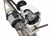 Полезная особенность станка – возможность поворота передней бабки вокруг вертикальной оси. Благодаря чему можно закреплять на планшайбе (входит в комплект) и обтачивать заготовки диаметром больше, чем размер над станиной. При этом ключевое значение приобретает конструкция подручника. Он имеет три степени свободы и собран из массивных литых деталей; все это позволяет пользоваться опорой и при точении сбоку станины. В некоторых случаях пригодится и возможность передвинуть переднюю бабку вдоль станины.