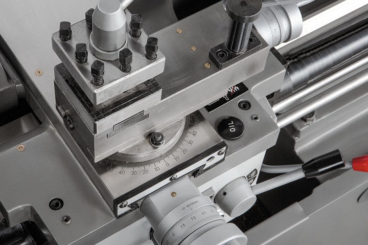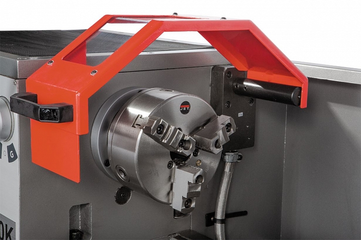 Многофункциональный универсальный токарно-винторезный станок JET GH-1440K на чугунном основании рассчитан на эксплуатацию промышленными предприятиями и крупными мастерскими, - там, где требуется особое качество и скорость обработки. Мощный асинхронный двигатель на 2,25 кВт способен обеспечивать работоспособность станка на протяжении всего рабочего дня. Станок полностью соответствует по ГОСТ 18097 классу точности «Н» - биение шпинделя не превышает 0,010 мм. На станке можно обтачивать детали диаметром до 356 мм над станиной, до 520 мм со снятым мостиком gap (длинна мостика 237 мм) и до 210 мм над суппортом.