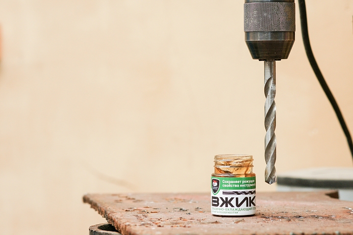Наносится непосредственно на инструмент или на обрабатываемую деталь. Мелкий инструмент (сверла) можно непосредственно погружать в банку. Особенно удобен «ВЖИК» при сверлении отверстий в металлоконструкциях в положении снизу вверх–гель не стекает и не разбрызгивается, значительно снижая трудоемкость сверления.