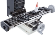 Крестовый рабочий стол размером 595 x140мм перемещается по направляющим скольжения типа ласточкин хвост. Закрепление тисков и других зажимных приспособлений осуществляется с помощью 3-х Т-образных пазов размером 12мм и расстоянием между ними 35мм.