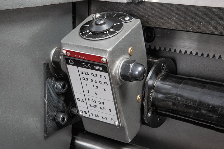 Коробка подач полностью автоматическая и позволяет нарезать все основные типы резьб без смены шестерен: метрические дюймовые, модульные и питчивые. GH-1640 ZX DRO может использовать широкий ассортимент резцов различного назначения, резцедержатель рассчитан на оснастку до 25x25 мм по сечению ее хвостовика. Станок поставляется с цифровыми линейками УЦИ (индекс «DRO») по трем осевым направлениям, что облегчает работу оператора, повышает точность обработки, экономит время и снижает риск возможного брака. GH-1640 ZX DRO оборудован регулируемой муфтой ходового винта и толчковым режимом пуска шпинделя для облегчения смены режимов работы.