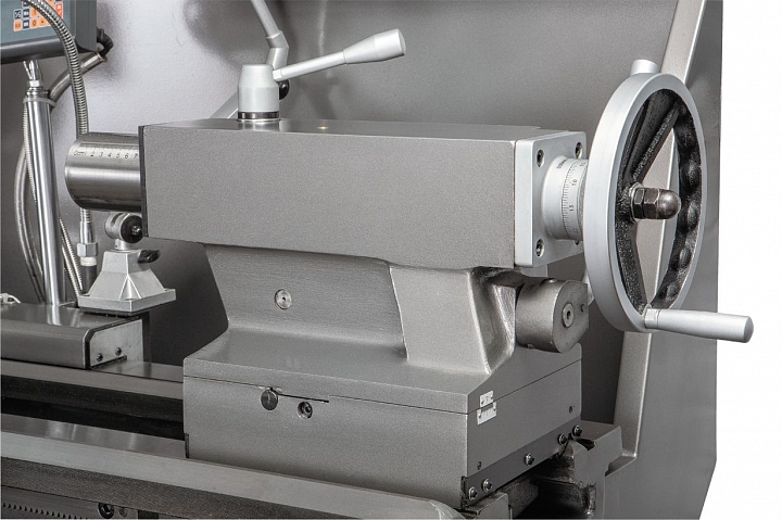 Конструктив GH-1640 ZX DRO имеет облегченное исполнение. Это достигается, прежде всего, за чет снижения металлоемкости станины, направляющие которой закаляются и шлифуются по фирменной технологии. Предусмотрена регулировка зазоров при помощи клиновых планок.